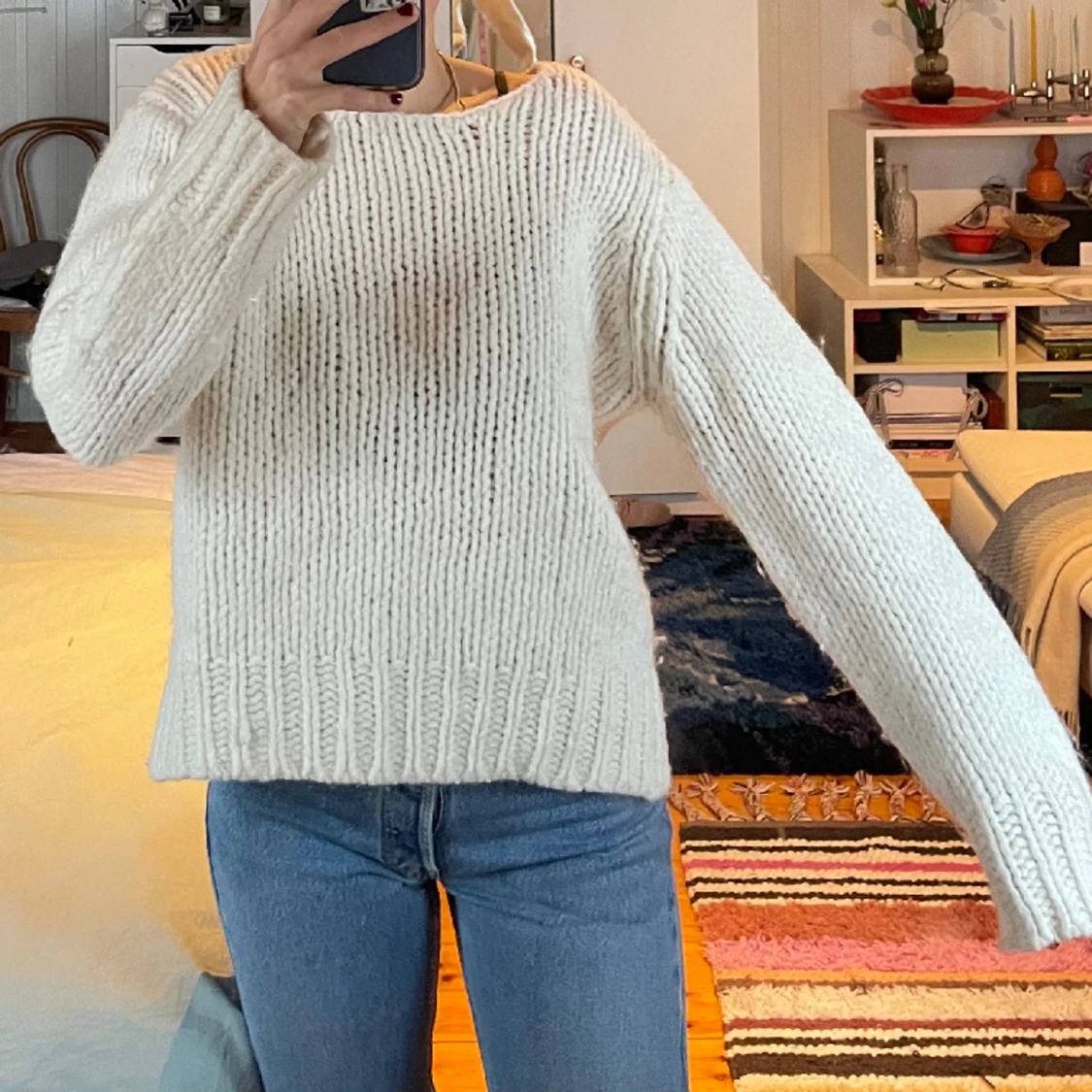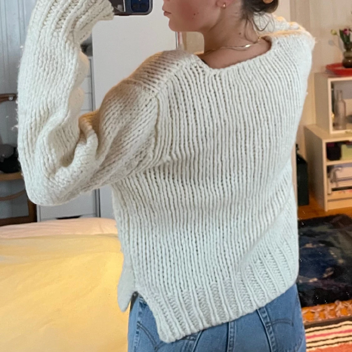 Oversize stickad tröja i 100% ull! Köpt på sellpy men aldrig använd. Liknar arkets klassiska stickade tröjor, jättesnygg! Står storlek L men sitter som en S/M