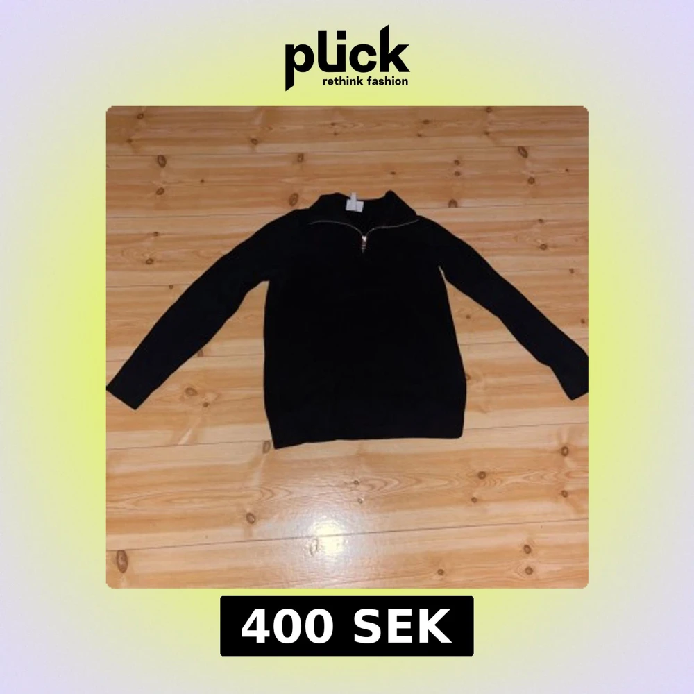 Svart stickad tröja med lång ärm och snygg half zip-dragkedja vid halsen. Perfekt för lager-på-lager och enkel att matcha med jeans.