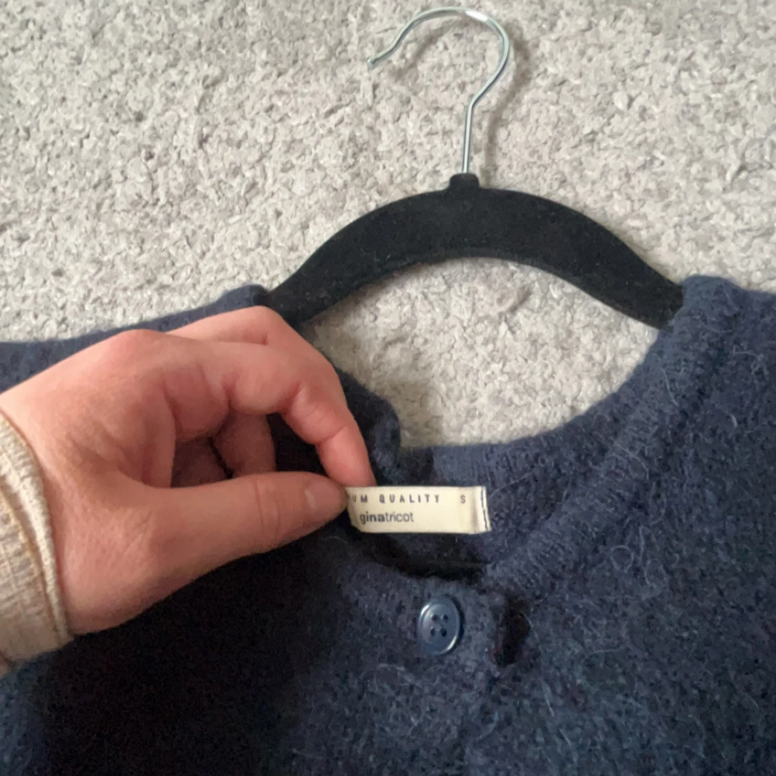 En mörkblå stickad kofta från Gina Tricot. Nypris är 400kr och tröjan är i ett bra skick, lite nopprig men de går att ta bort💞 inte ett fast pris så de går att diskutera