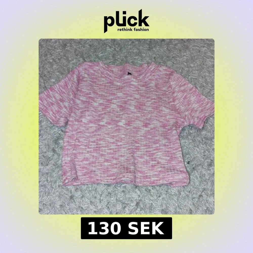 Superfin croppad topp i rosa och vitt med korta ärmar. Toppen är stickad och gjord i mjukt material som känns skönt mot huden. Perfekt för dig som gillar en avslappnad men ändå söt stil.