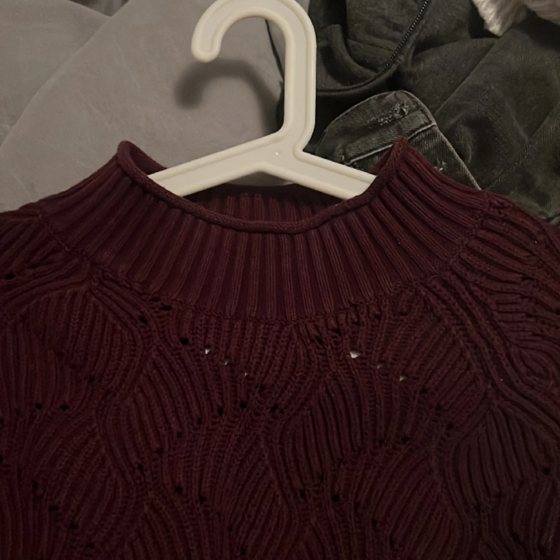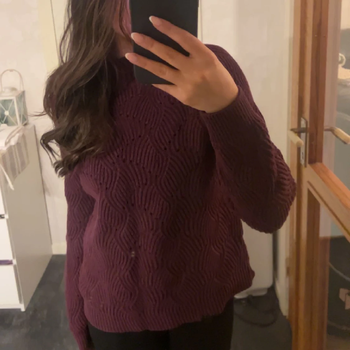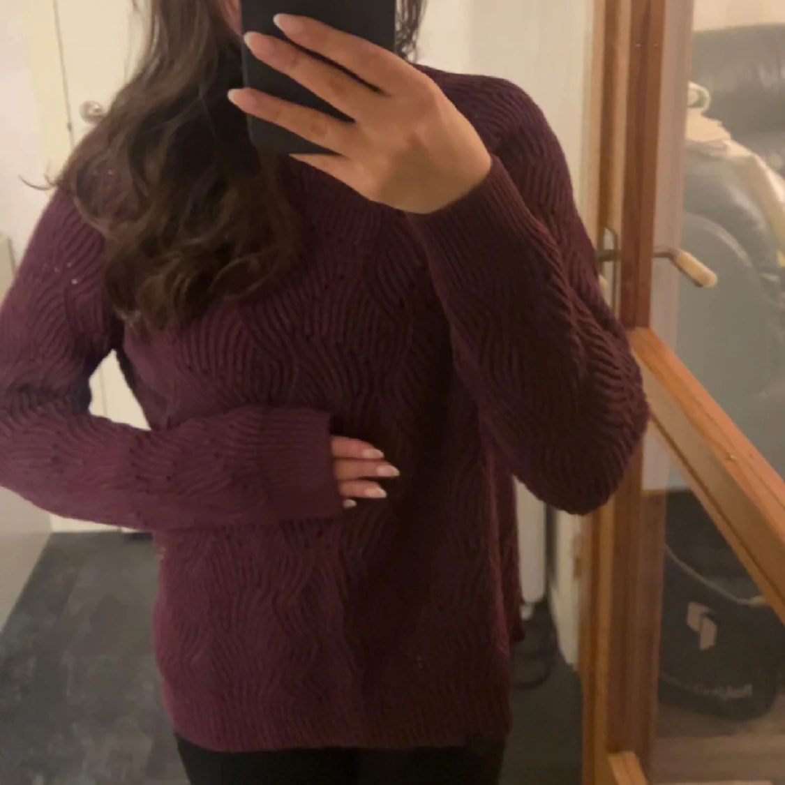 Stickad tröja i en unik färg och i ett fint mönster. Jättemysig nu i vinter❄️💗