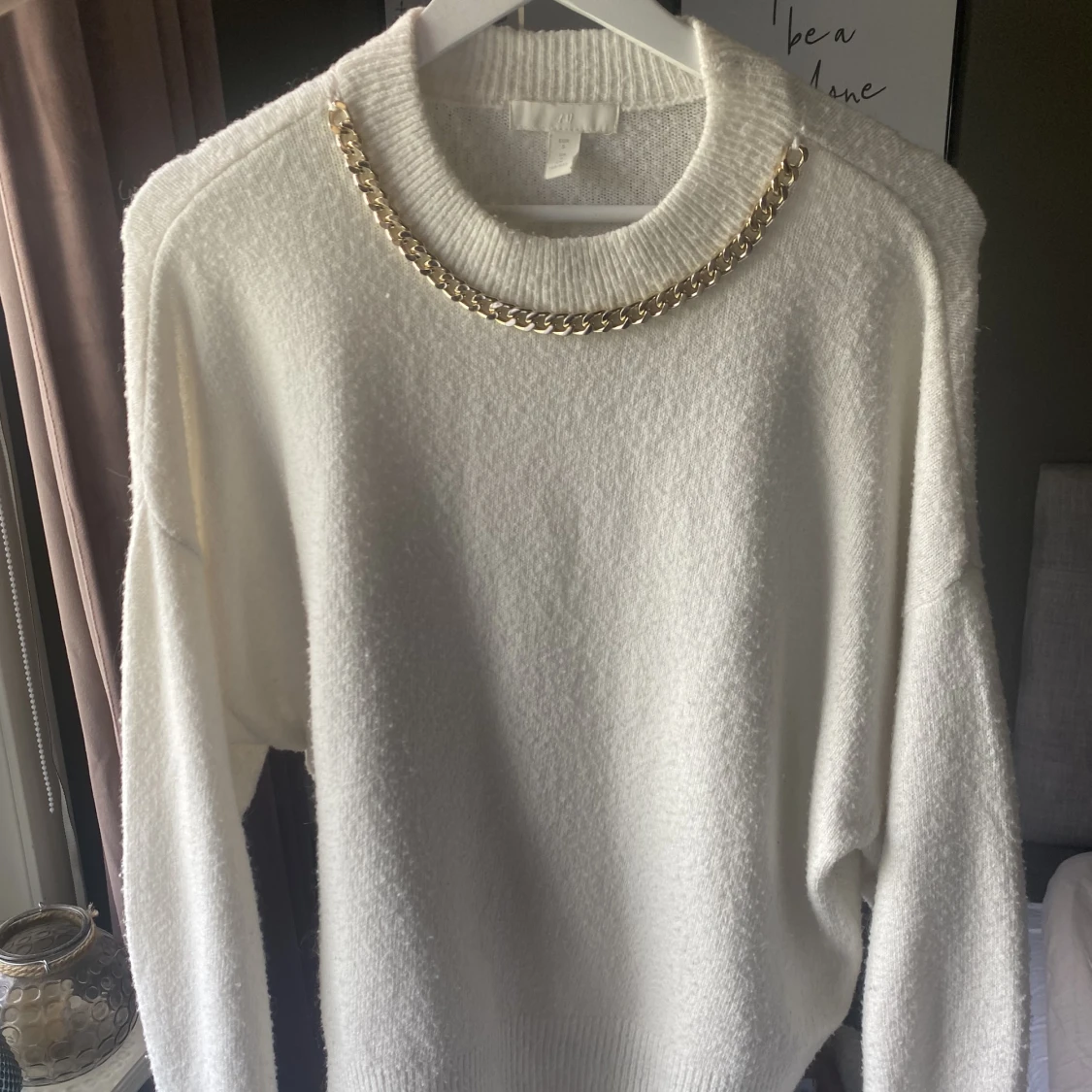 Fin stickad tröja med en kedjedetalj vid halsen. Säljer denna då den tyvärr inte kommer till användning⭐️