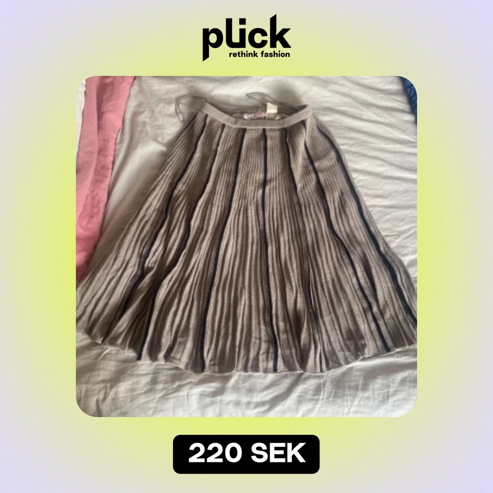 Grå stickad kjol med innefolket till hösten eller kallare sommardagar, räfflad med svarta ränder
