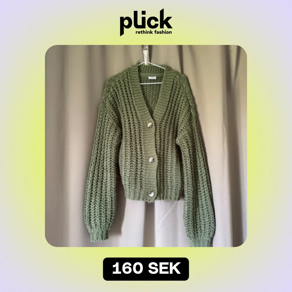 Grovstickad grön kofta Noisy May, med ballongärm. Storlek XS.