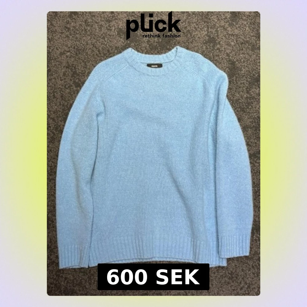 Supermjuk och stilren ljusblå stickad tröja från Mads Nørgaard i alpacka. Tröjan har rund hals, ribbade muddar och lång ärm. Perfekt för lager på lager under kyliga dagar. Tröjan är nästan helt ny och bara använd ett fåtal gånger.