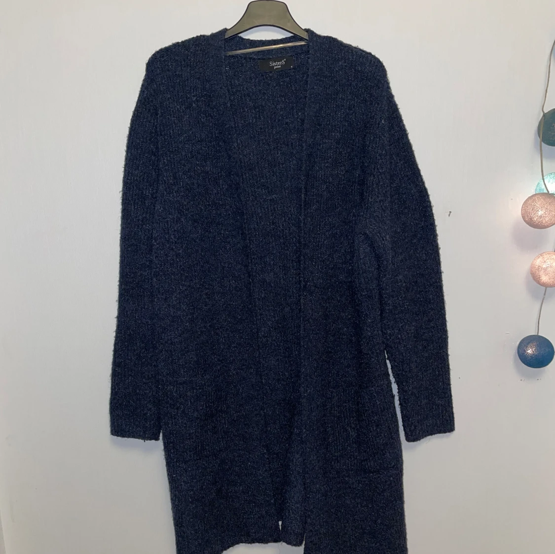 Mysig stickad långkofta, använd under pandemin men inte rörd sedan dess! Två fickor :)