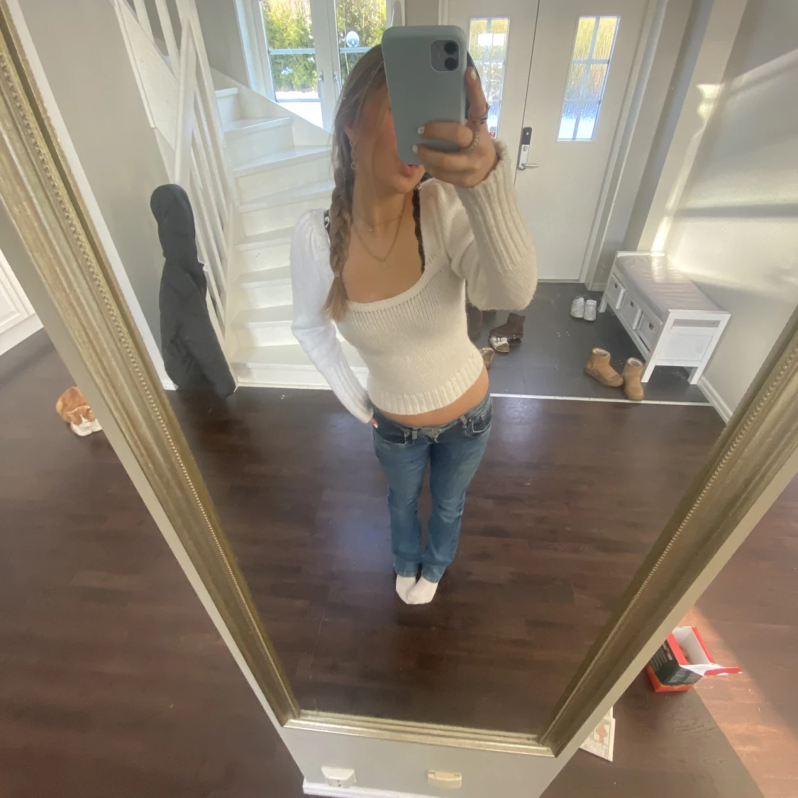 Hör har vi en mjuk och härlig stickad topp i en fin cream vit färg💋 en perfekt varmare topp nu till vintern!❄️ Den är ifrån Lindex i storlek M!! (Jag har tagit en klämma bak för att göra den lite mindre för att visa hur den ser ut!) ❣️