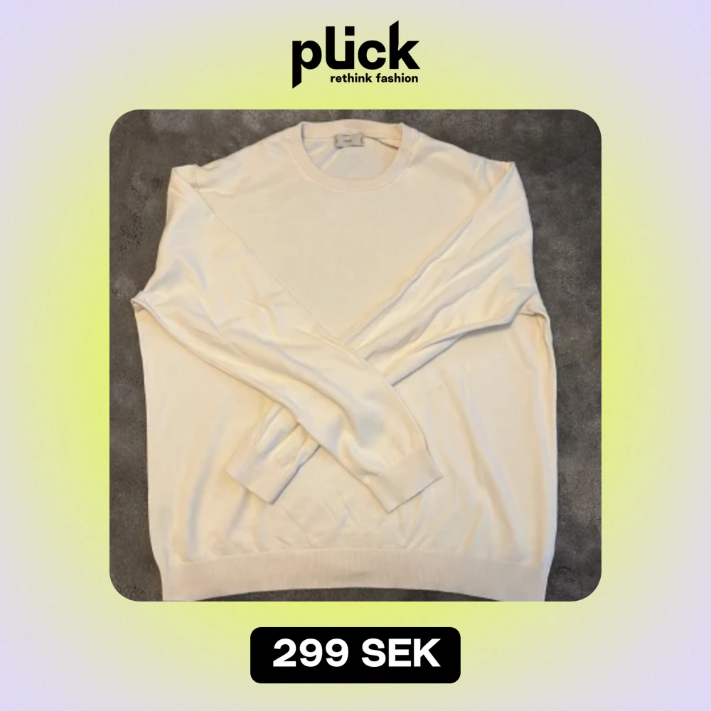 Väldigt skön och stilig tröja som är creem white. köpte denna för 599, säljer denna för ett pris som rimligt med tanke på att den knappt är använd. Skick 10/10