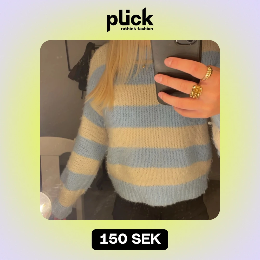 Stickad randig tröja från vero Moda🤍Bra skick, storlek xs men passar även mig som brukar ha S. Lite små nopprig därav priset