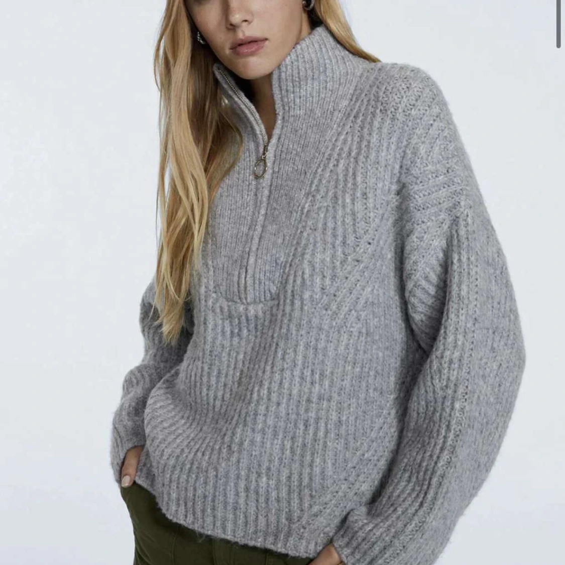 Säljer denna trendiga stickade half zip tröjan❤️nypris är 399❤️den är i jättejätte skönt mjukt material❤️🔥