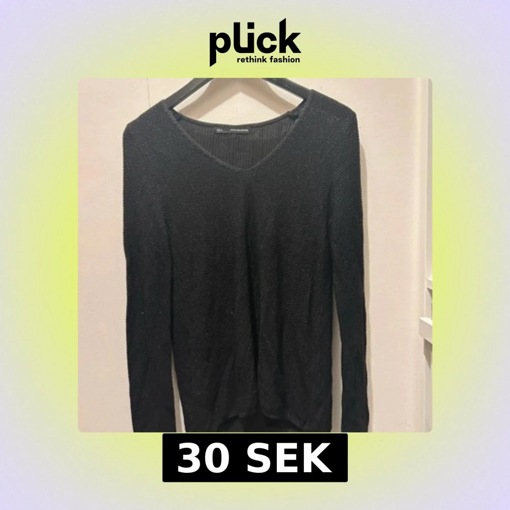 Svart stickad tröja från Sfera Collection med v-ringning och långa ärmar. Baksidan har en cool slits med plisserat tyg under som ger en unik look. Perfekt för dig som gillar stilrena plagg med en twist.