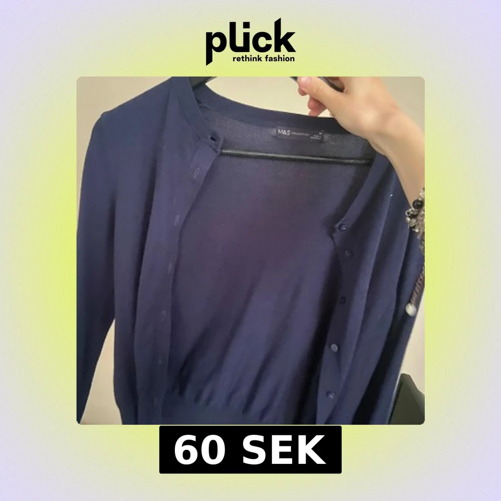 Säljer en klassisk mörkblå kofta från M&S Collection. Koftan har rund halsringning, långa ärmar och knäppning framtill med matchande knappar. Perfekt att slänga över en topp eller klänning.