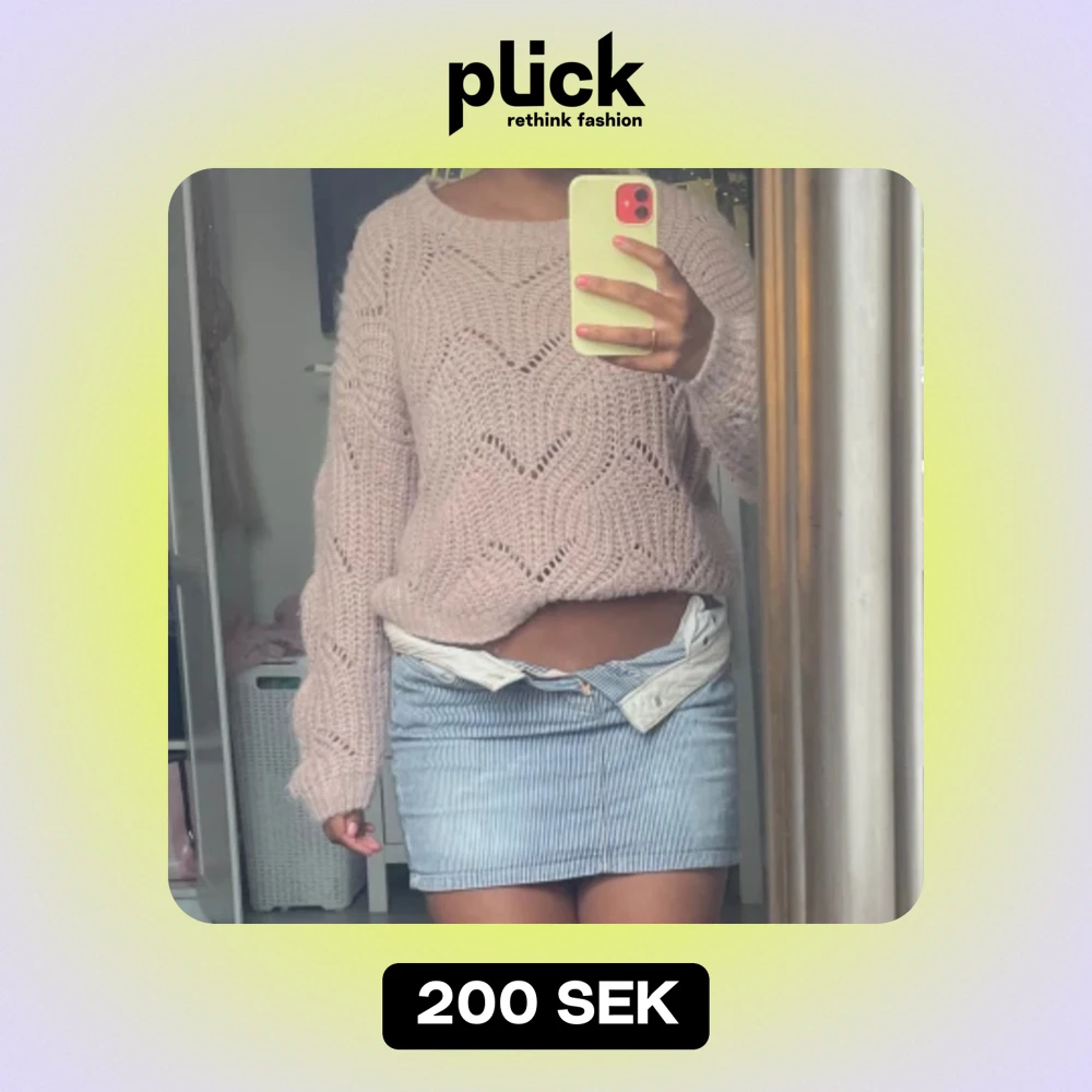 Mönsterstickad tröja i en mörkare beige nyans. Osäker på storlek men jag har S så skulle säga S