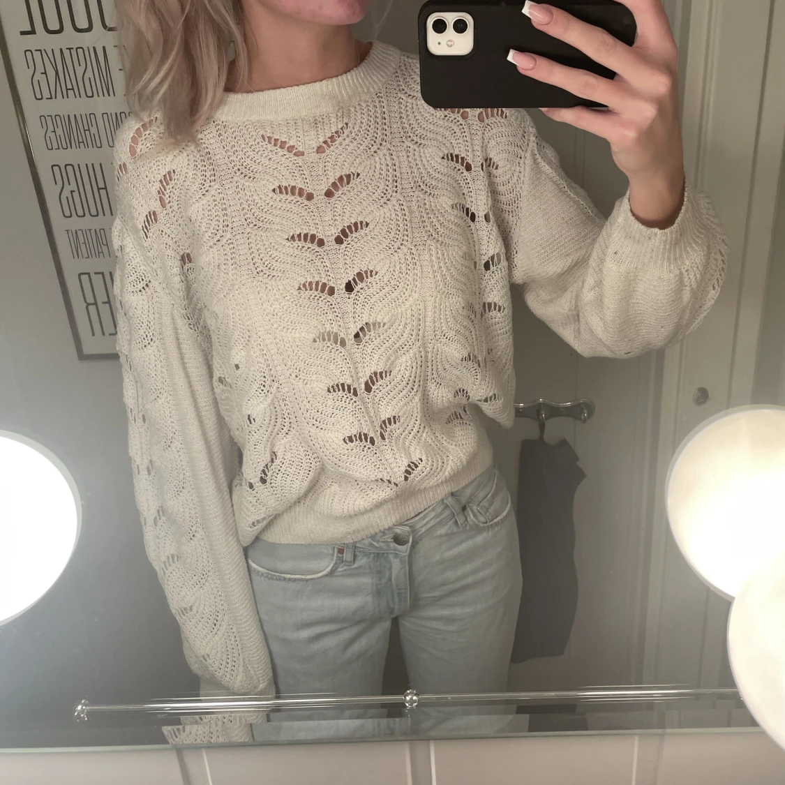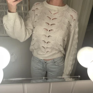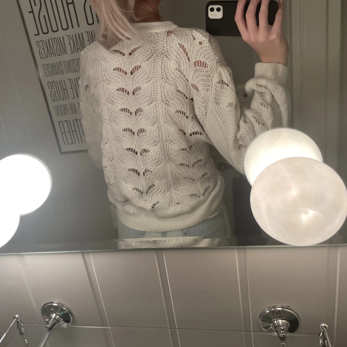 Jättefin vit stickad tröja. Stickad med ”hål” men den är ändå inte så genomskinlig. Bra skick.