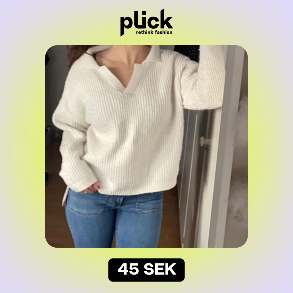 fin stickad tröja ⭐️ tecken på användning & nopprig på flera ställen, går nog att fixa för den som orkar 🥰 strl M, sitter mer som S!