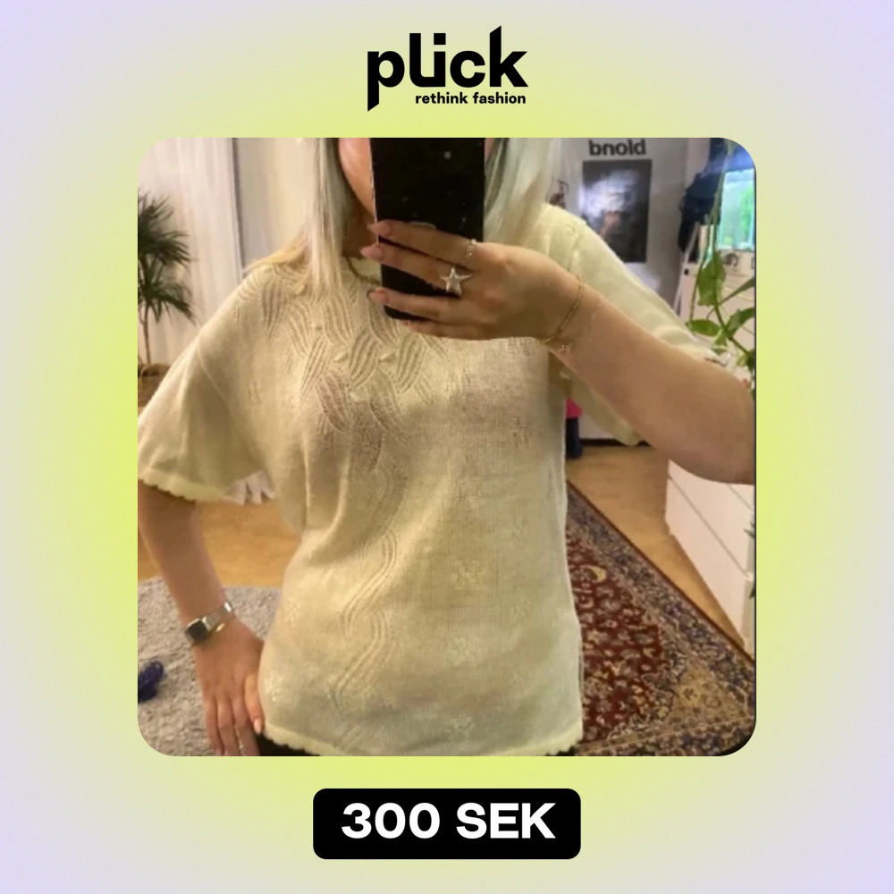 En gul/beige stickad tröja med detaljer super fin fin på, den har dock en liten smink fläck men man lägger knappt märke till den, skriv för fler bilder, pris kan även diskuteras.