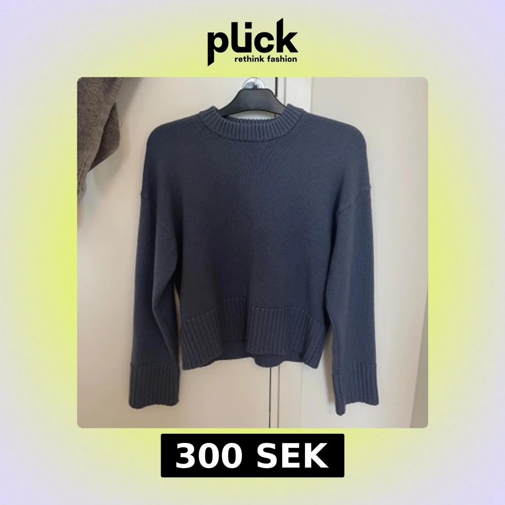 Snygg mörkblå stickad tröja med breda ribbade muddar vid ärmslut, nederkant och halsringning. Tröjan har en avslappnad passform och är perfekt för lager-på-lager. Enkel och stilren design som funkar till allt. Slutsåld på H&M!!