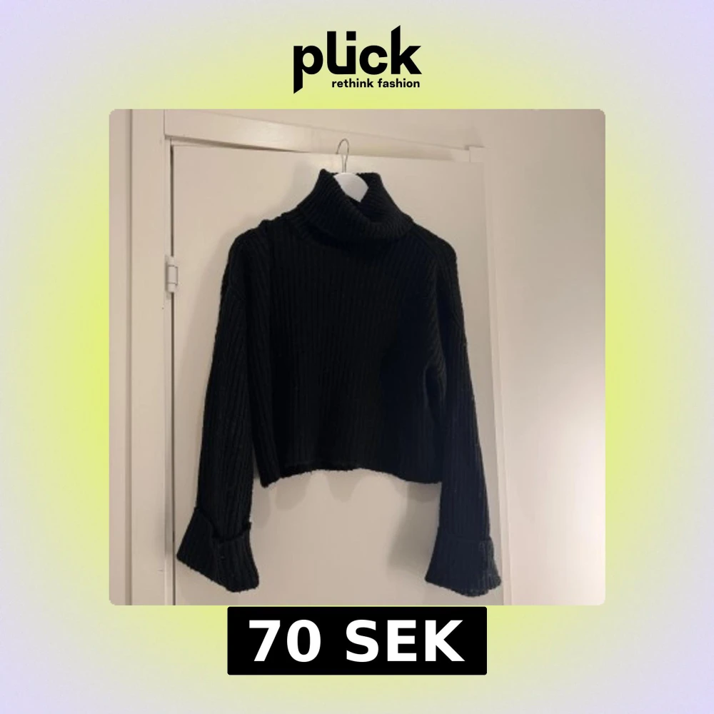Stickad tröja med hög hals. Tröjan är använd och är i bra skick utöver att den är ”nopprig” pga att den legat ihop med andra ljusa stickade tröjor i en låda men det går enkelt att ta bort med en noppermaskin eller för hand 😊 storlek XS