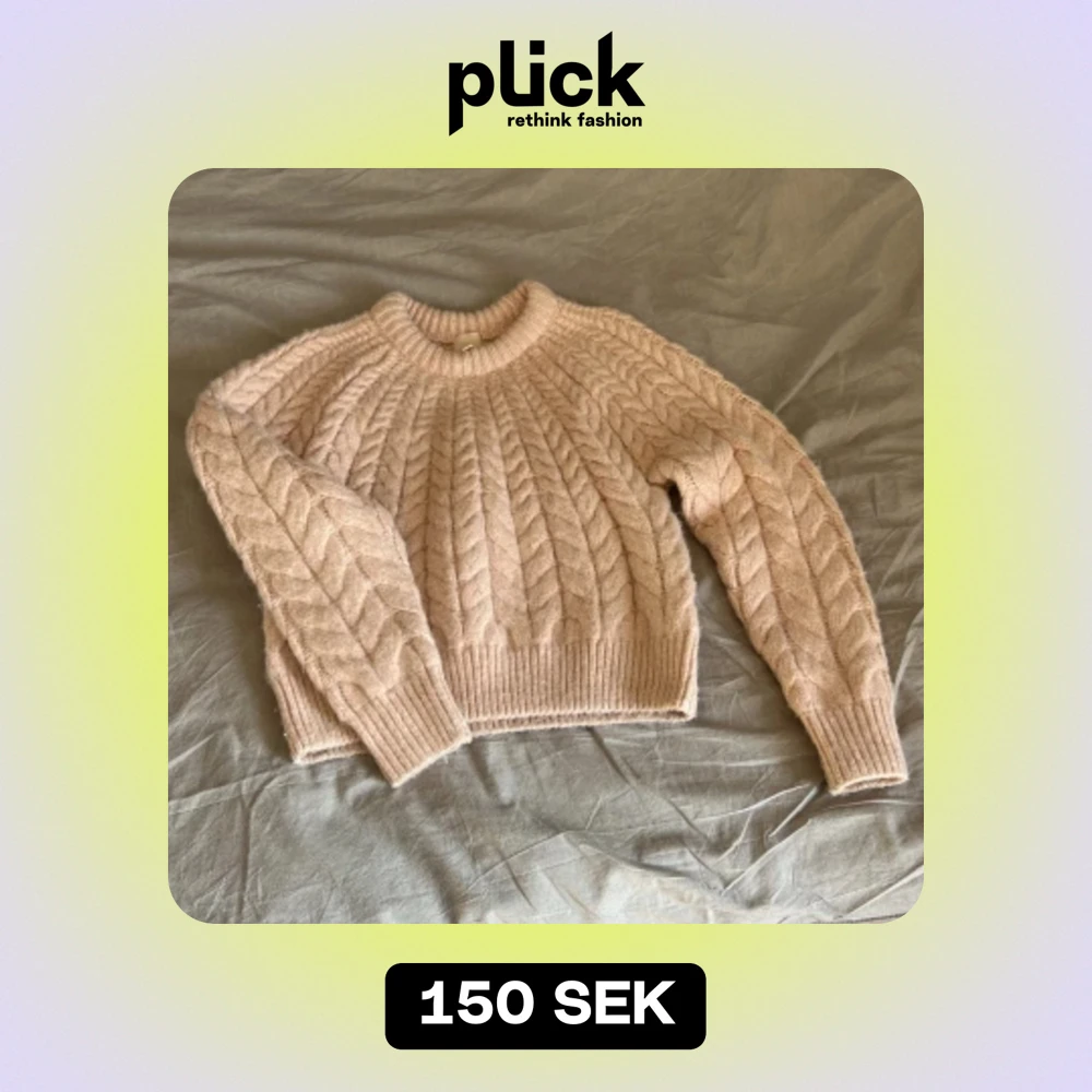Säljer denna ljus rosa stickade tröja från H&M. Ganska tjock men väldigt mysig och perfekt nu till vinter, den är i bra skick och använd ca 2 gånger! 💞