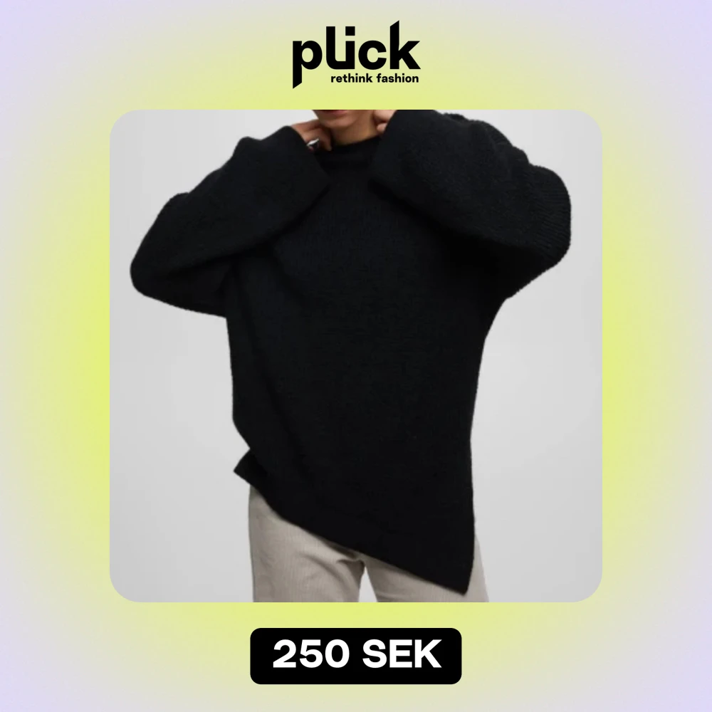 LÅNADE BILDER från hemsidan då den sitter jättestort på mig. Svart stickad tröja från Pull&Bear. Har en slits på ena sidan. Oversize. Använd 1 gång, nypris: 399