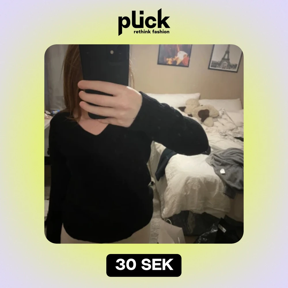Svart finstickad tröja Har ett hål i som är ihopsytt se på bild 2 Storlek M från vila