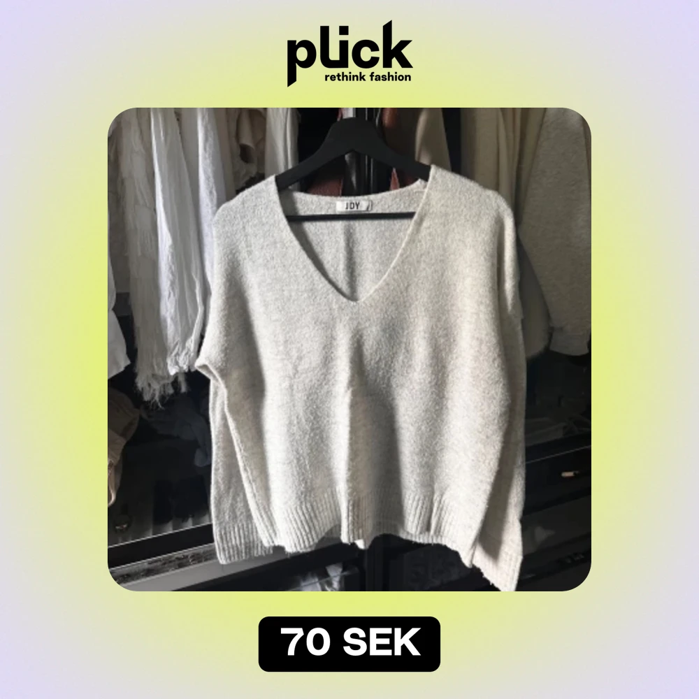 Beige/krämvit stickad tröja med en V-ringning framtill