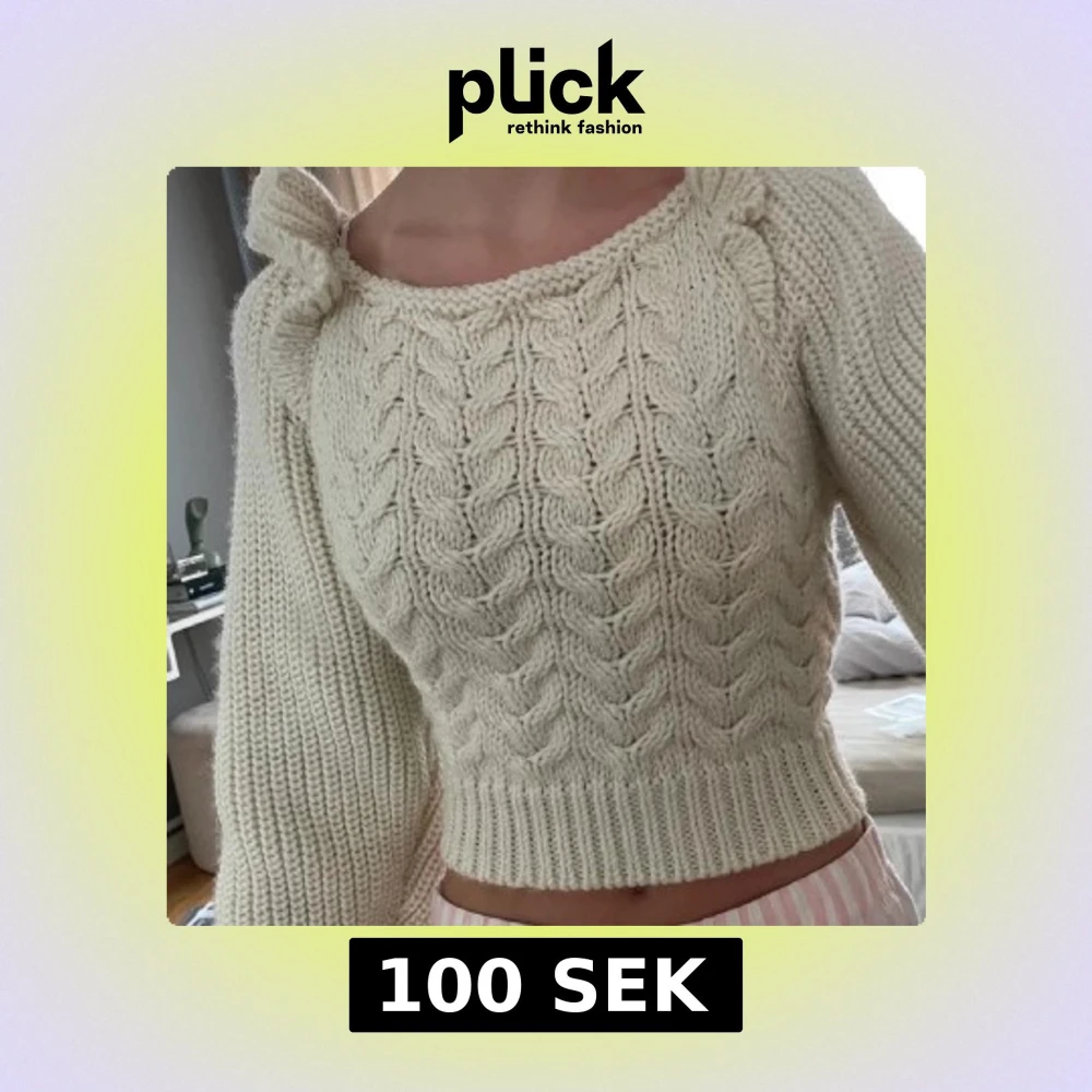 Säljer en mysig beige stickad tröja med ett snyggt flätmönster. Tröjan är mjuk och skön och har en unik knytning i ryggen. Perfekt för kyliga dagar!💗(lånade bilder från förra äger en så den inte satt så bra på just mig)