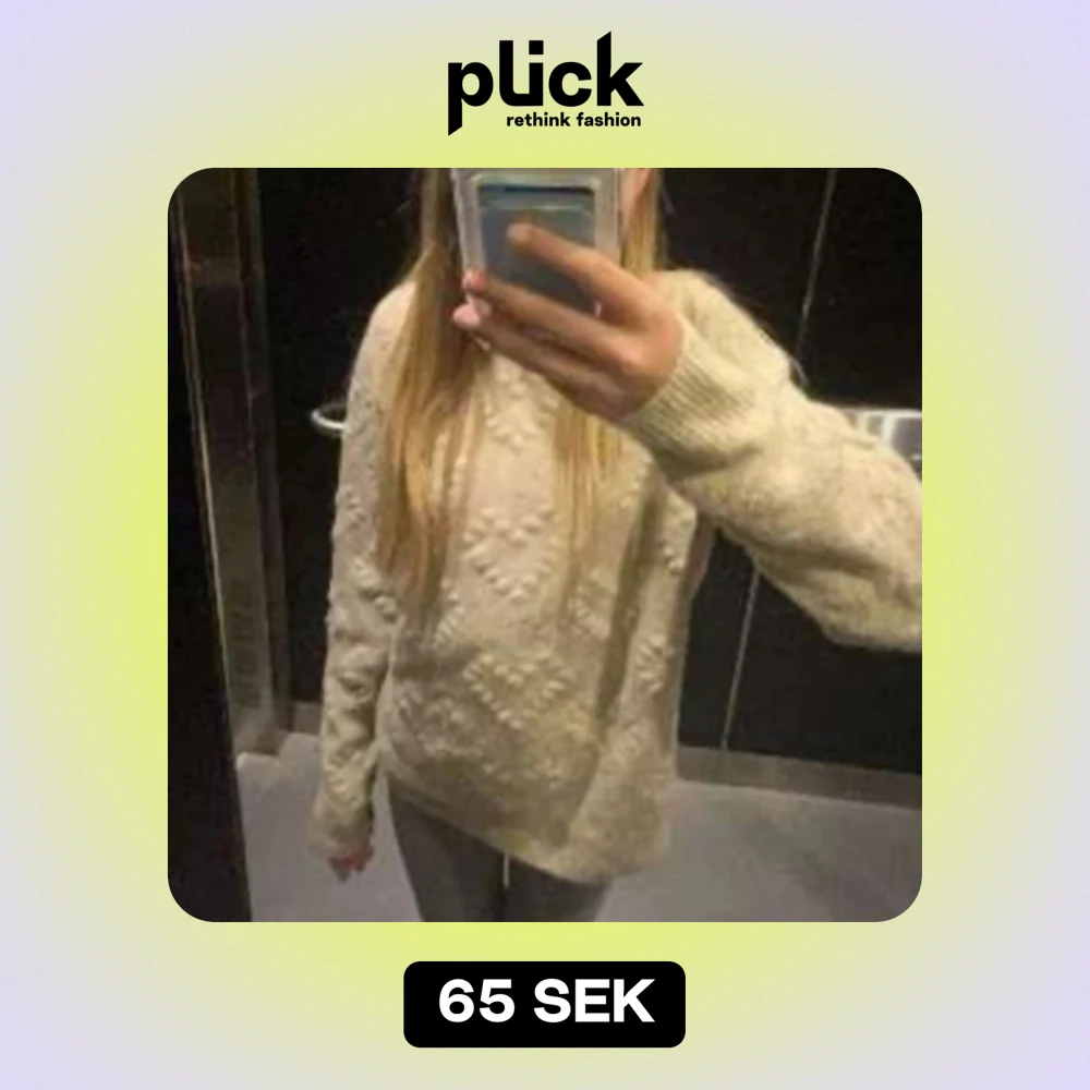 Stickad beige tröja med hjärtan på framsidan ifrån hm i storlek xs💞även i bra skick och andvänt fåtal gånger💕