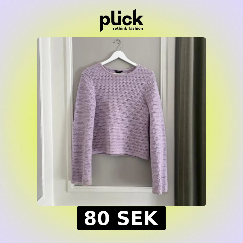 Söt ljuslila tröja från Lindex i storlek XS. Den har ett fint stickat mönster och är mjuk. Passar bra till både jeans och kjol.