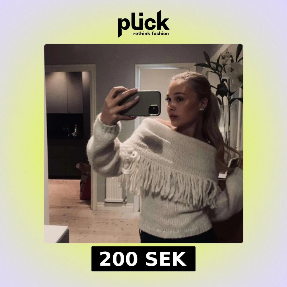 unik stickad tröja som är offshoulder med ”fransar”❤️jättefint skick, endast använd en gång
