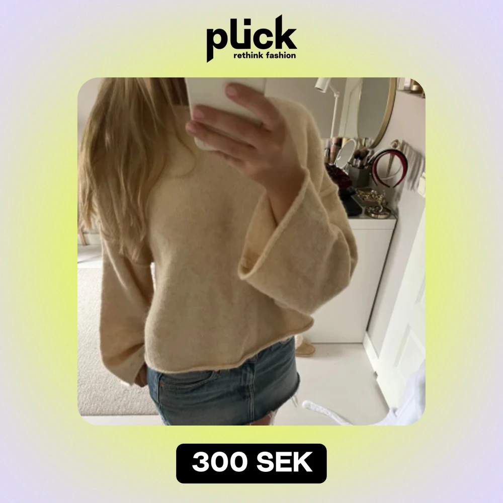 Jättefin och skön stickad tröja som ej kommer till användning💞 Har klippt bort lappen men den är i strl S (och man kan ändån avgöra vilket som är fram och bak)💗 Skulle säga att färgen är en blandning mellan ljusgul och beige💖