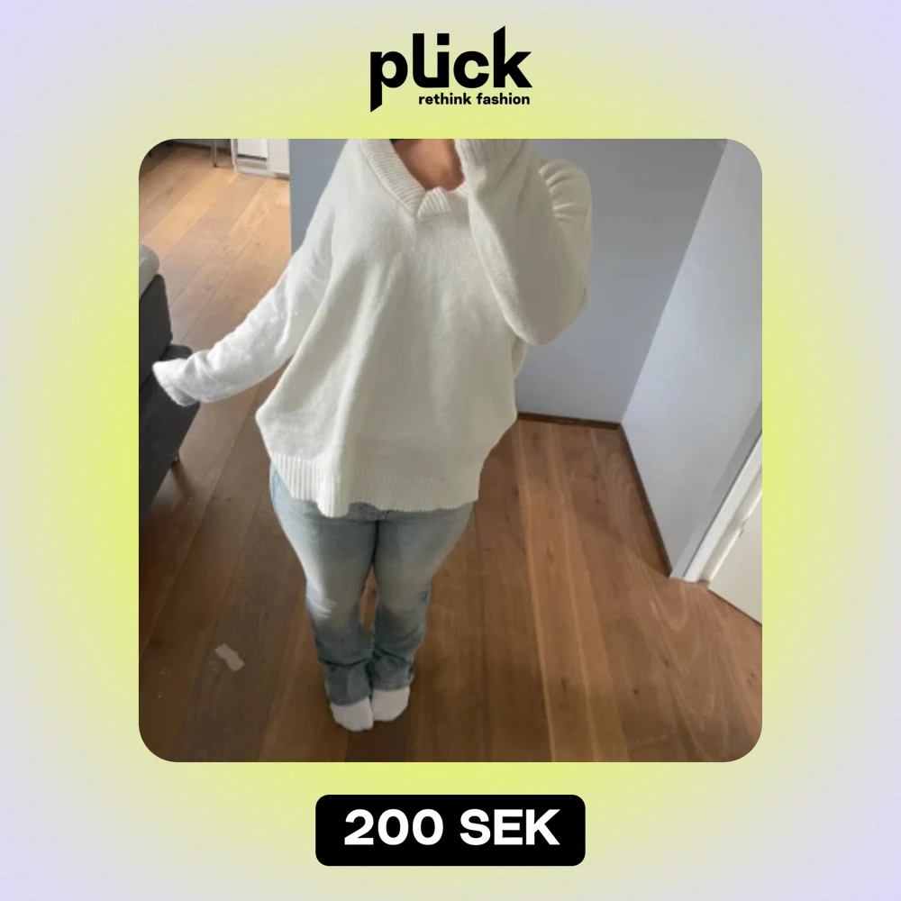Fluffig vit v-ringad tröja Gina Tricot - Supermjuk och fluffig vit stickad tröja från Gina Tricot med v-ringning. Långärmad modell med relaxed fit och mysig känsla, perfekt för kyliga dagar. Enkel att styla med jeans eller kjol för en chill look.