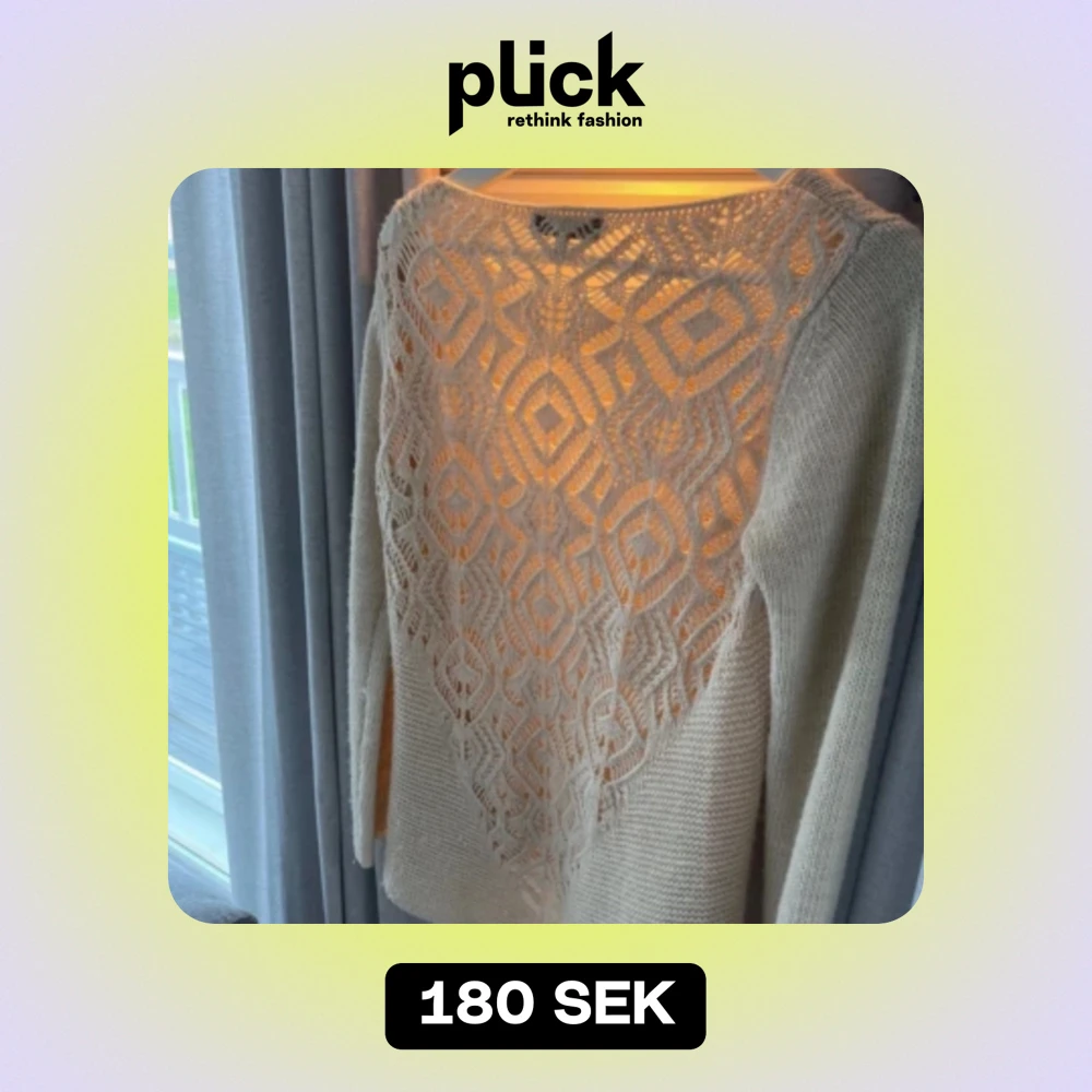 Så fin stickad tröja med jättefin virkad detalj i ryggen 💕 priset går att diskutera vid snabb affär 🌸