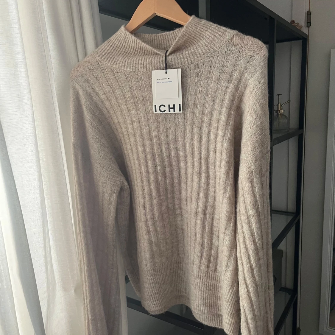 Stickad polo tröja från ICHI, aldrig använd har fortfarande lappen kvar. Är i storlek xs. Om du har fler frågor är det bara att skriva☺️