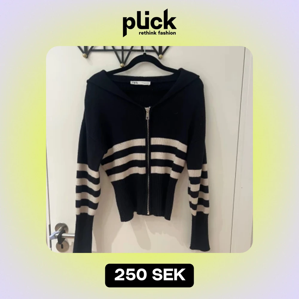 Säljer denne skickade tröjan från zara med dragkedja i storlek S❣️Superbra skick. Marinblå med vita ränder