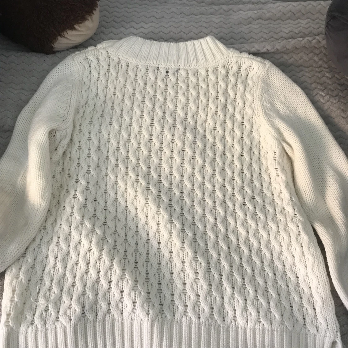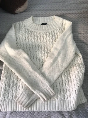 En vit stickad tröja som jag inte använder längre! Fortfarande i fint skick! Det står ingen storlek men skulle säga att det är en S ungefär!❤️