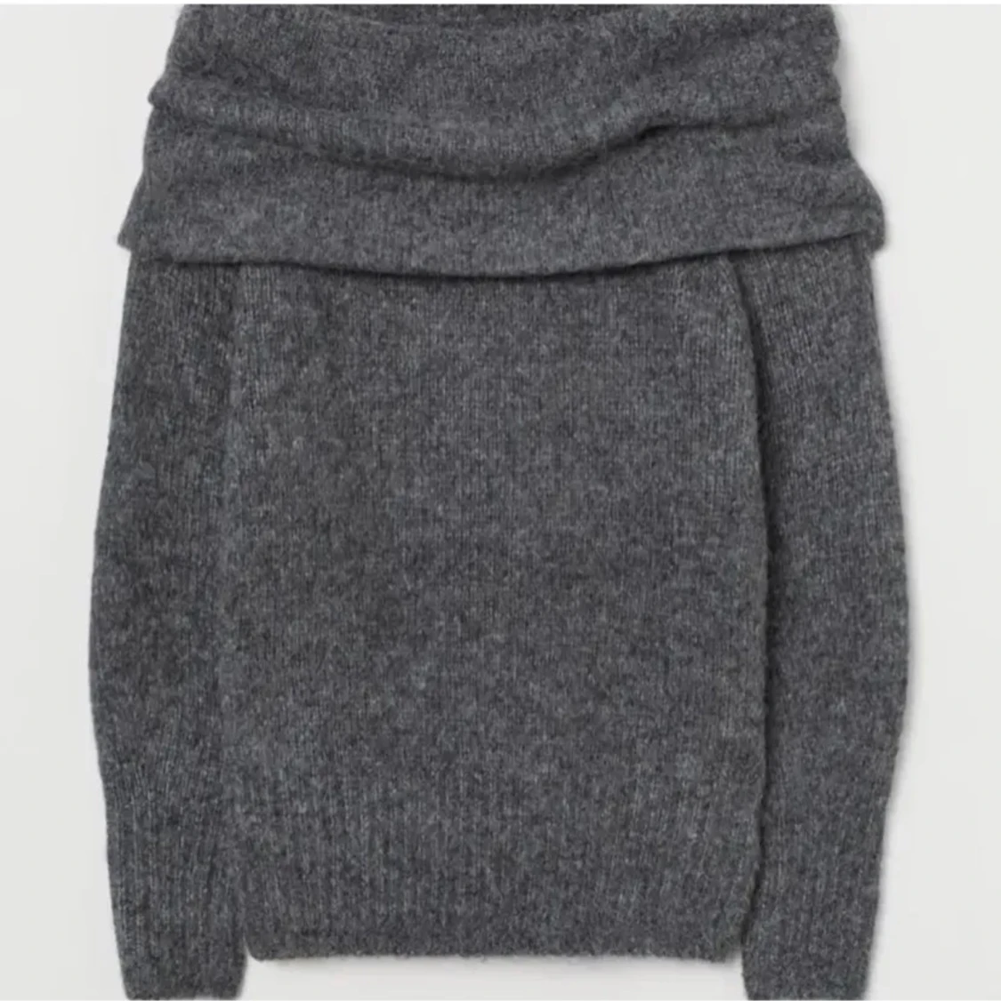 Säljer denna sköna stickade tröja från hm!😍 jag skulle säga att den är lite grå blå i färgen alltså inte lika grå som på bilden.