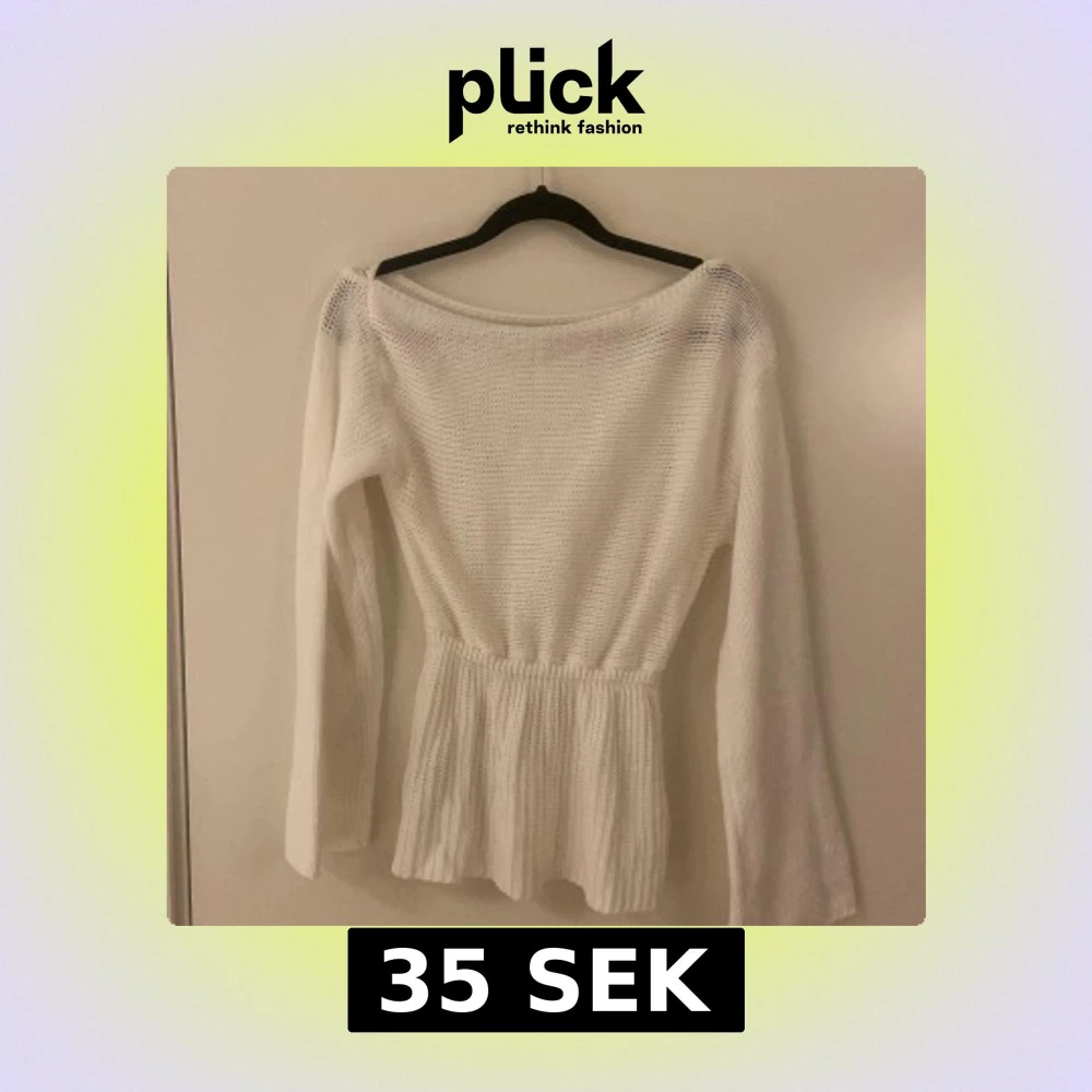 Vit stickad tröja med volang i midjan. Storlek S💕