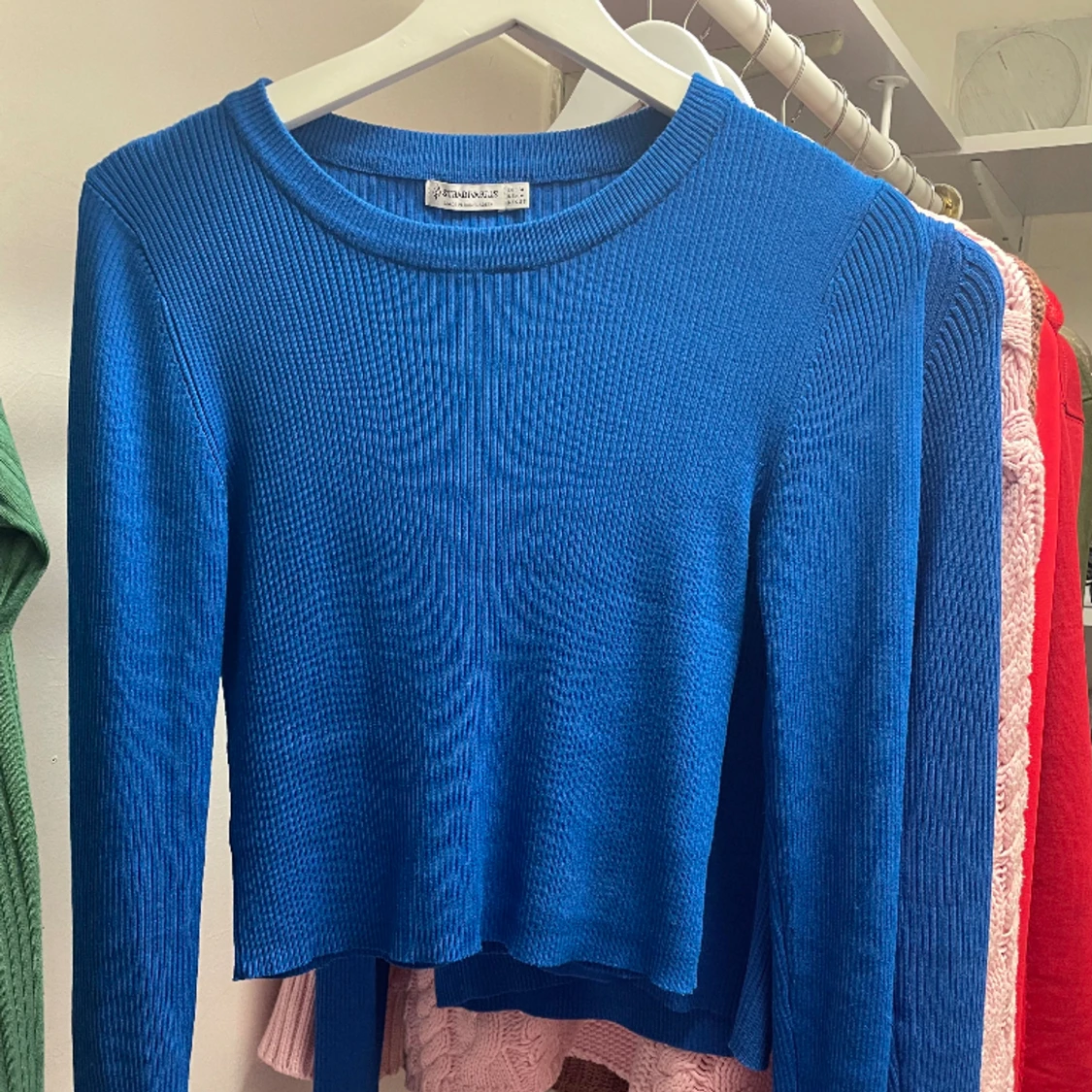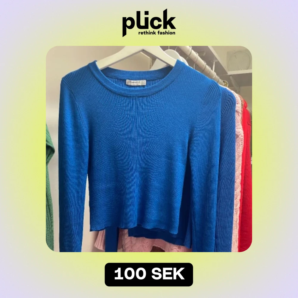 jätte fin blå tröja som är lite kortare i modellen, används inte❤️ står storlek M men passar mig som brukar ha S