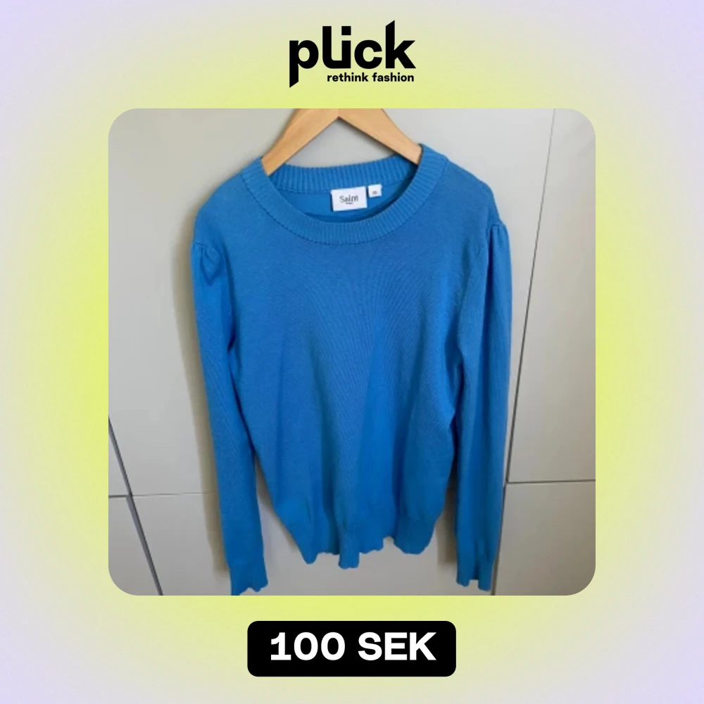 En jättefin blå stickad tröja ifrån saint💙 nästan aldrig använd alltså är den i jättebra skick💙 Storlek XS! köpte för ca 400 kr och säljer nu för 100 kr