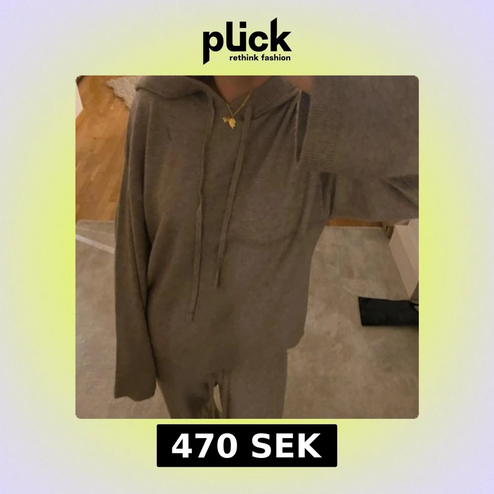 Säljer detta fina stickade mysset. Det är i bra skick! Skriv för fler frågor. Färgen är kall mörk beige. Storlek S och jag är 165cm. Byxorna är lite långa när jag har dom low waist.