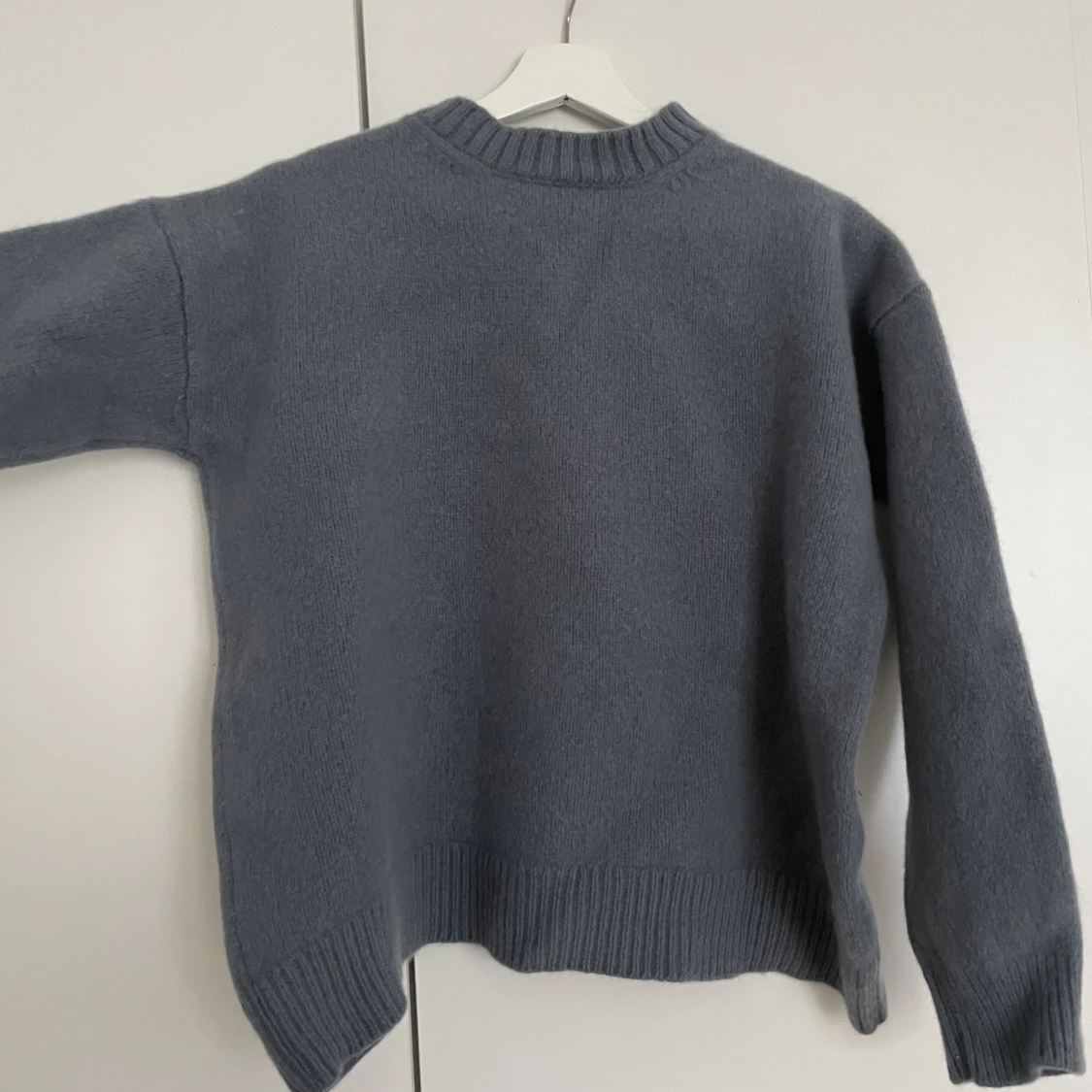 Stickad tröja från Filippa K inköpt i augusti i år, använd ett fåtal gånger, väldigt bra skick. Strl s. Färgen är mörkblå/duvblå