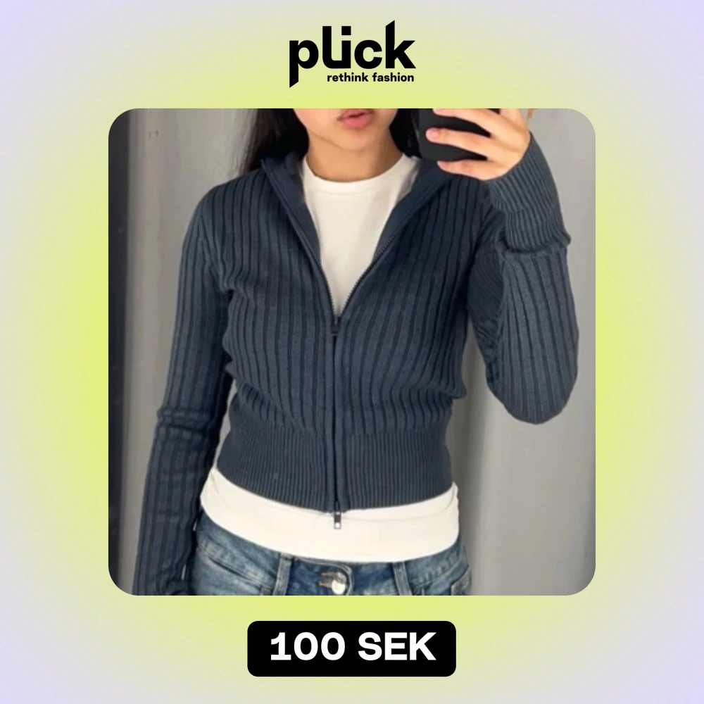 blå stickad zip up från hm🫶🏻