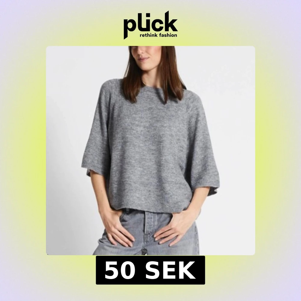 Mysig grå stickad tröja med trekvartsärmar. Använd ändast 1 gång!