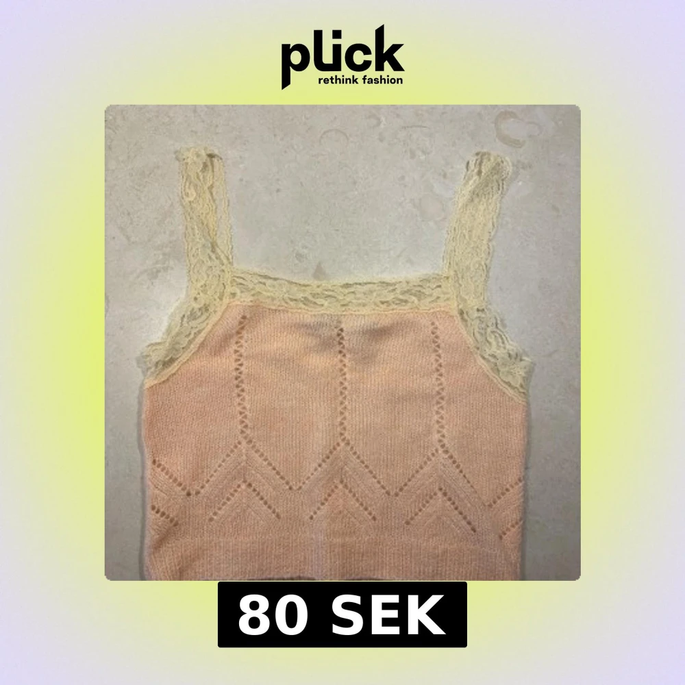 Ljusrosa, croppat linne med spets. Stickat material, mjuk.