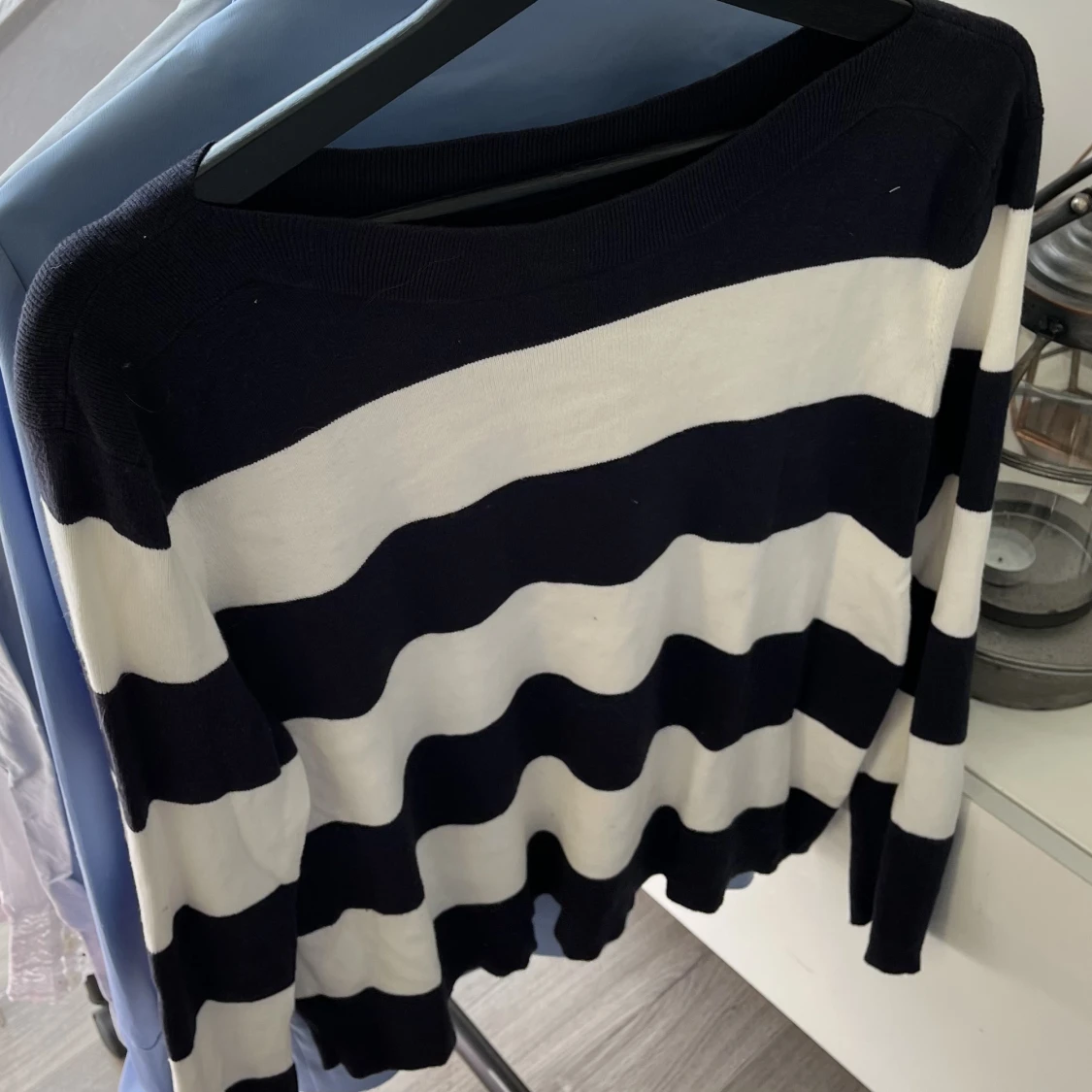 Randig tröja, vit och blå