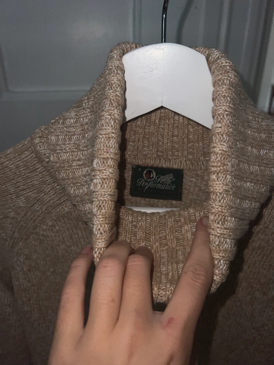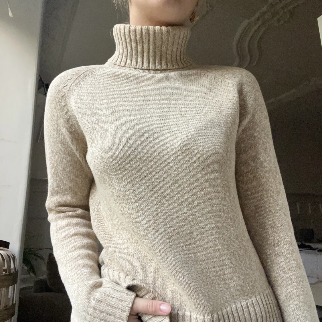 Finstickad turtleneck från peak. Beige och vit melerad.