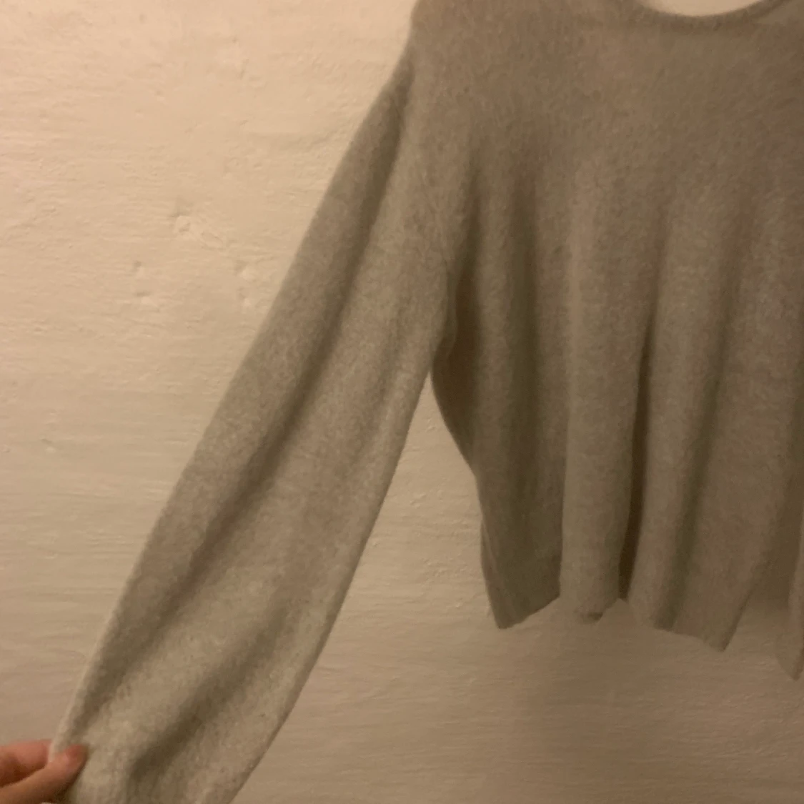 Grå stickad tröja med öppen rygg, knappt använd, storlek s/m