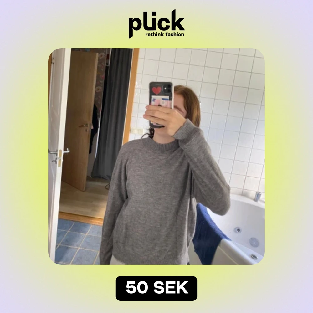 Säljer en mysig grå stickad tröja med rund hals och långa ärmar. Perfekt för kyliga dagar och passar till det mesta i garderoben. Tröjan har en normal passform och ribbade muddar vid ärmslut och nederkant🥰