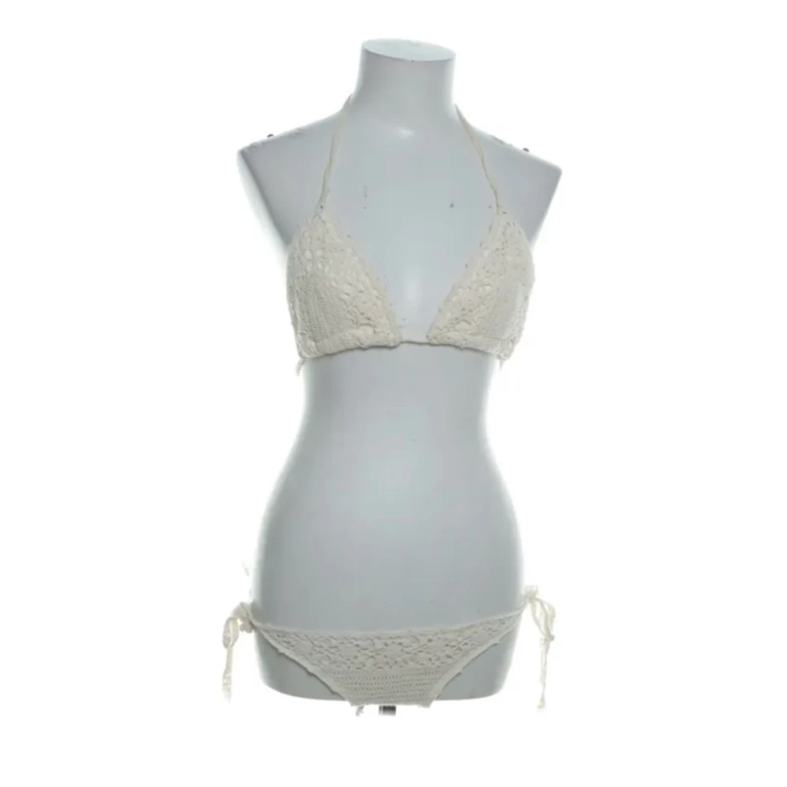 Pärlvit bikini i stickat material. Aldrig använd endast provad på med underkläder under! 150+ frakt❤️